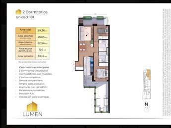 Unidades de 1, 2 dormitorios, monoambientes de generosas dimensiones acompañados con 2 baños dependiendo de la unidad (en imágenes se puede ver el plano de cada apartamento) también para mayor disfrute con terrazas (con parrilleros) y patios propios.