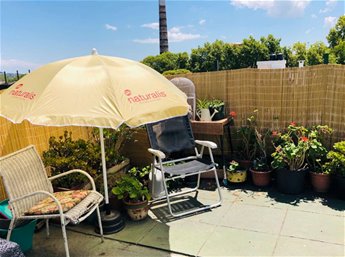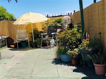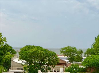 Desde el lavadero se sale a la terraza de buen tamaño con vista despejada a la calle Uruguayana, al cerro de Montevideo y a la bahía.