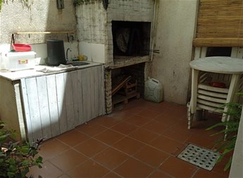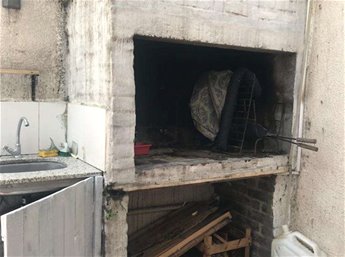 Patio con parrillero e instalación para el lavarropas.