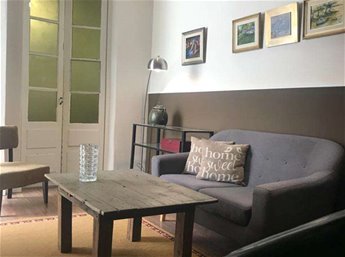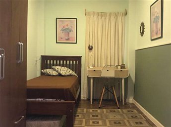 Se accede al living con puerta ventana al patio, junto al living hay un dormitorio pequeño, tipo escritorio.